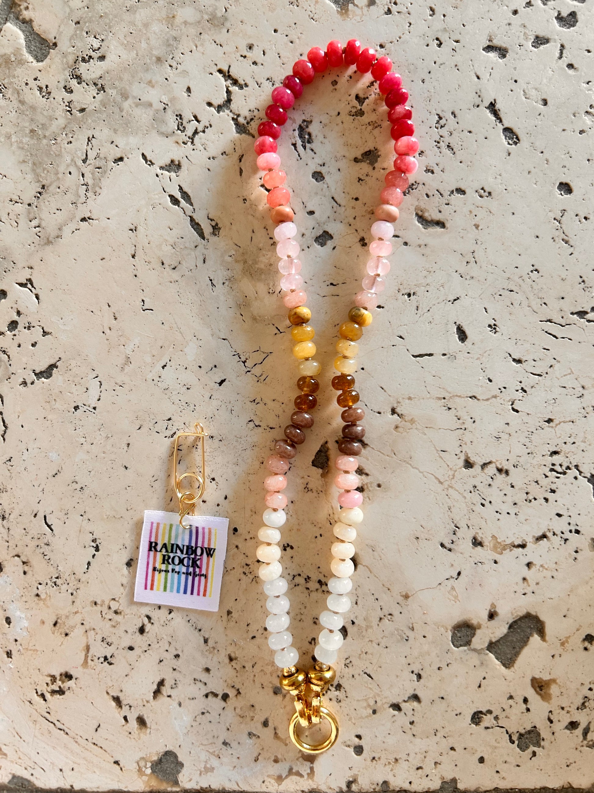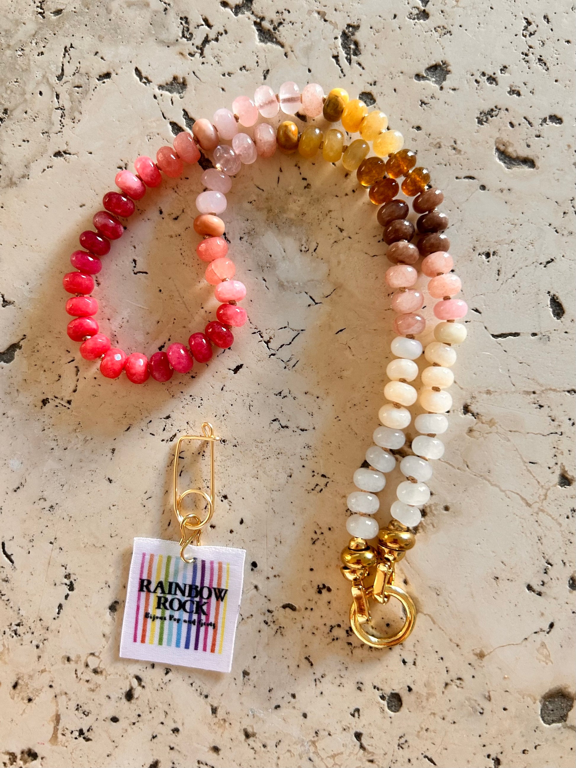 Ses nuances pêche, caramel, rose quartz et blanc laiteux glissent sur le poignet comme une onde apaisante.