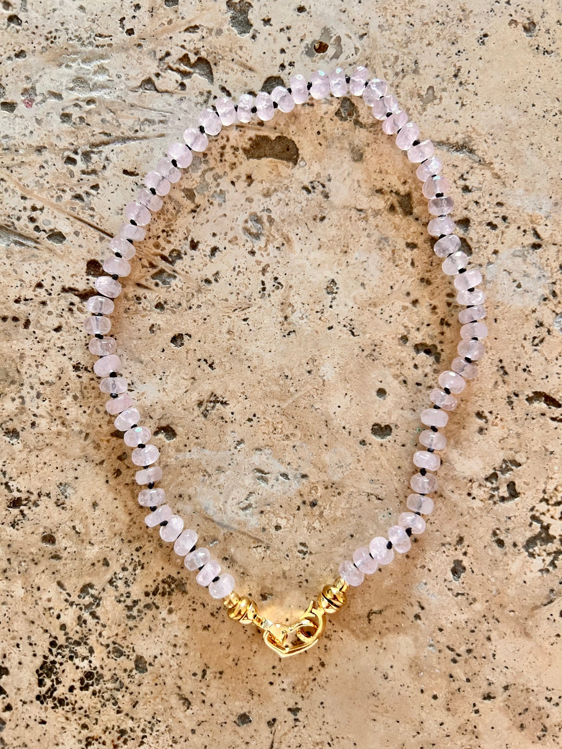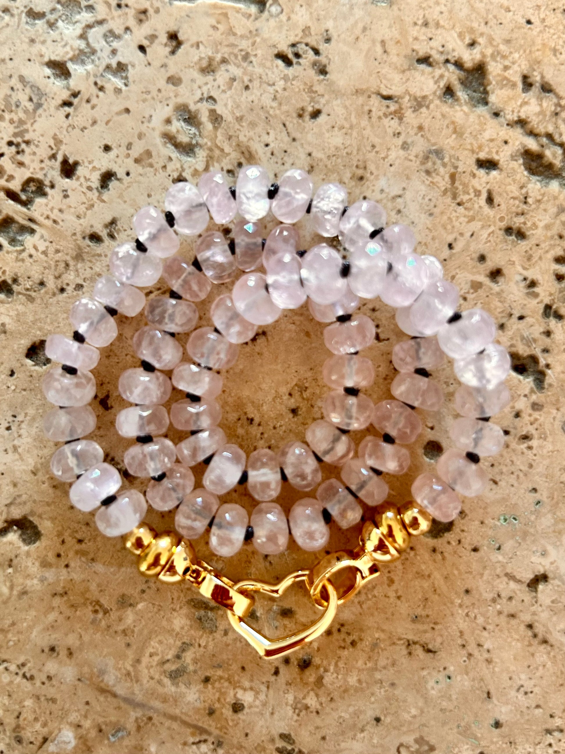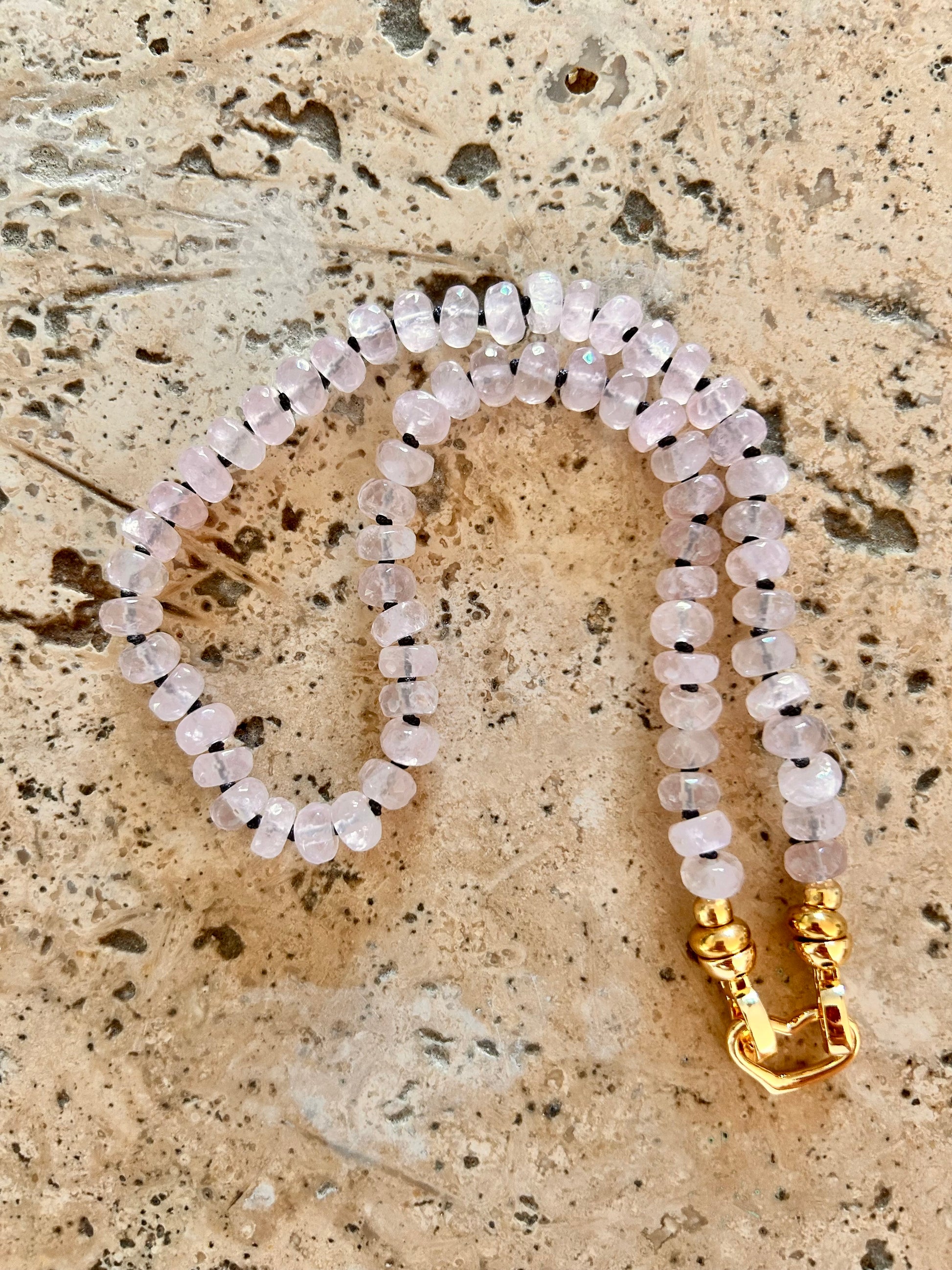 - Pierres : Quartz rose facetté 5x8mm, nouées individuellement