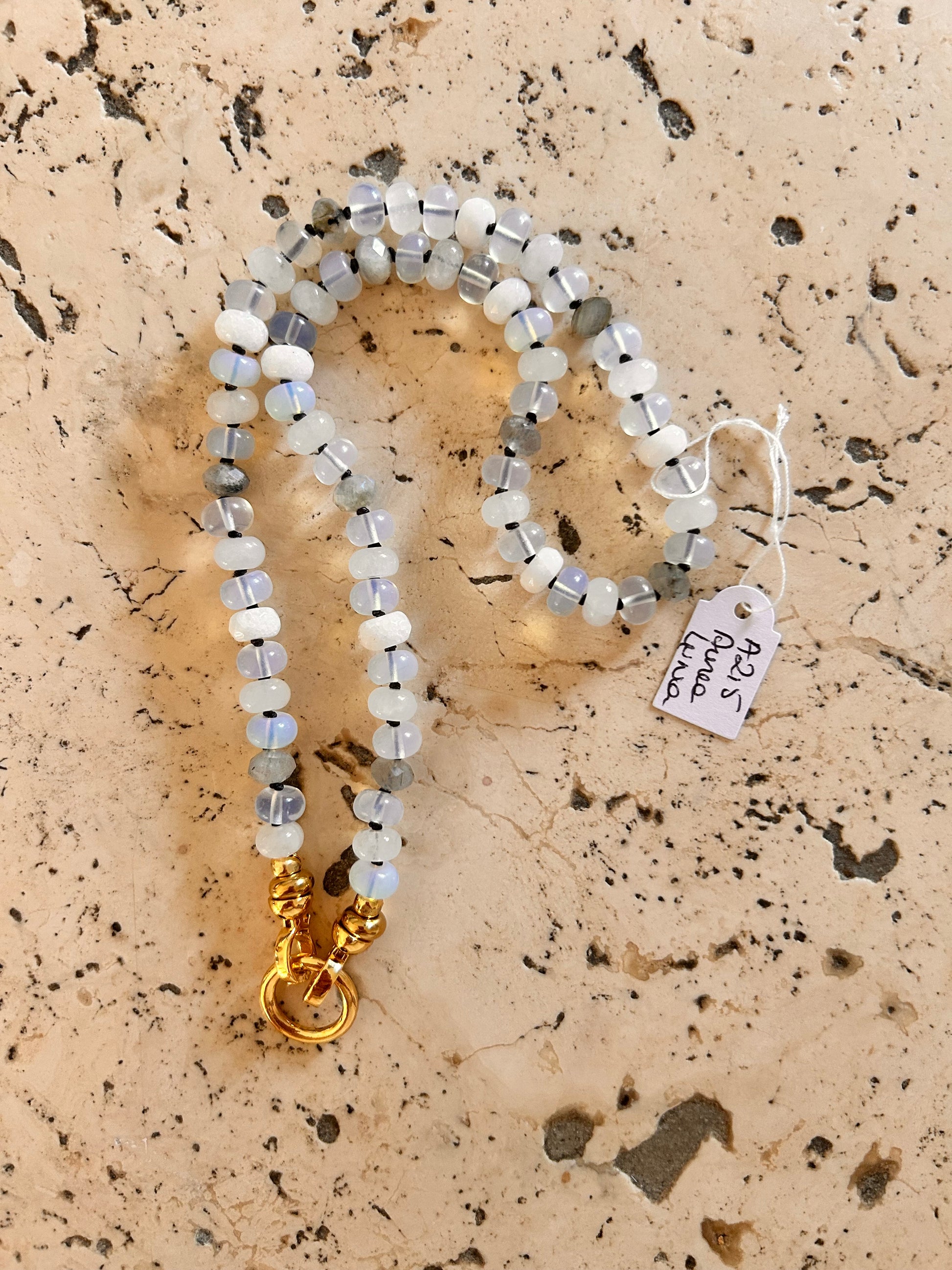 - Pierres : opalite, labradorite et quartz clair facettés (5x8mm)