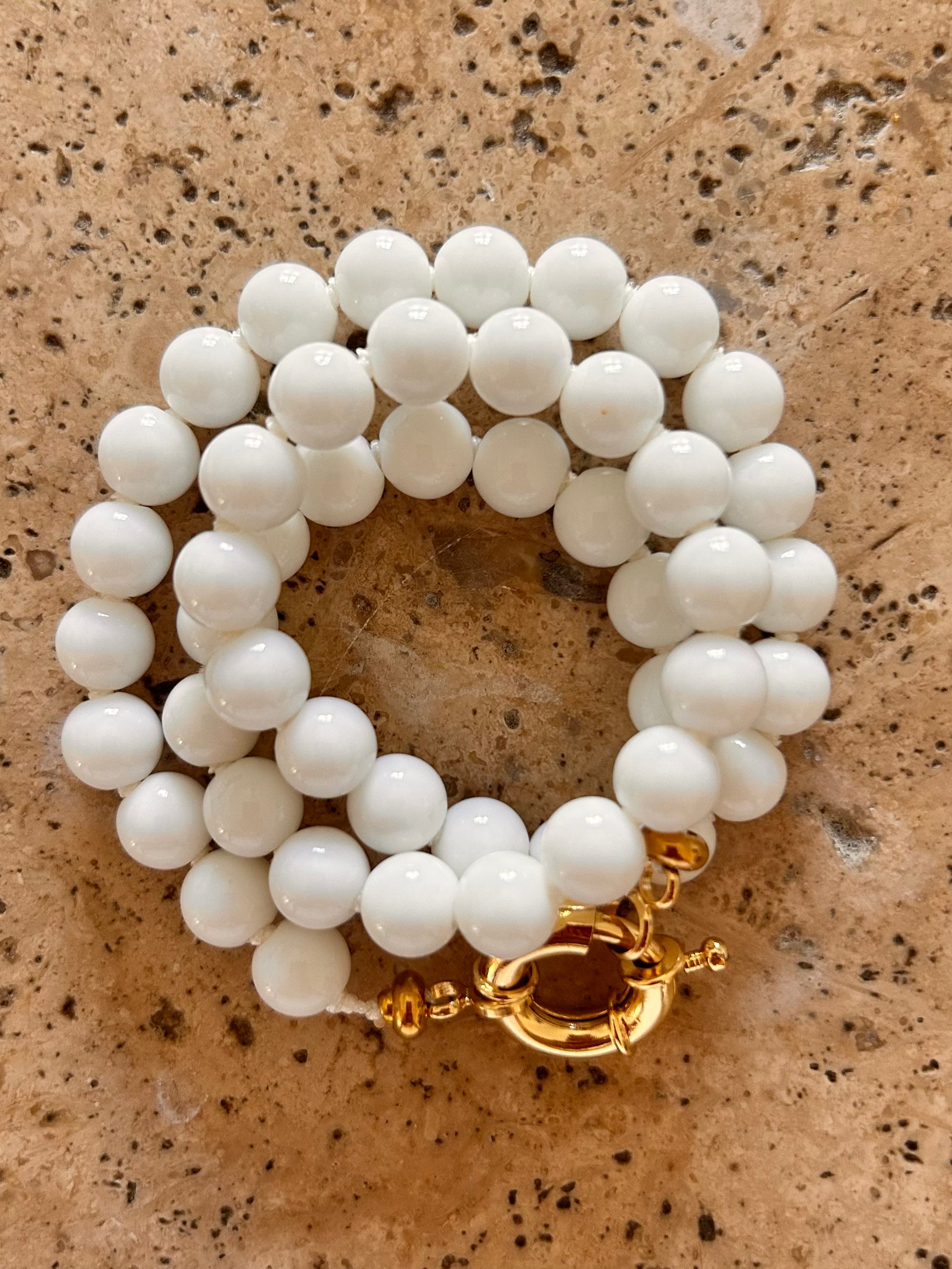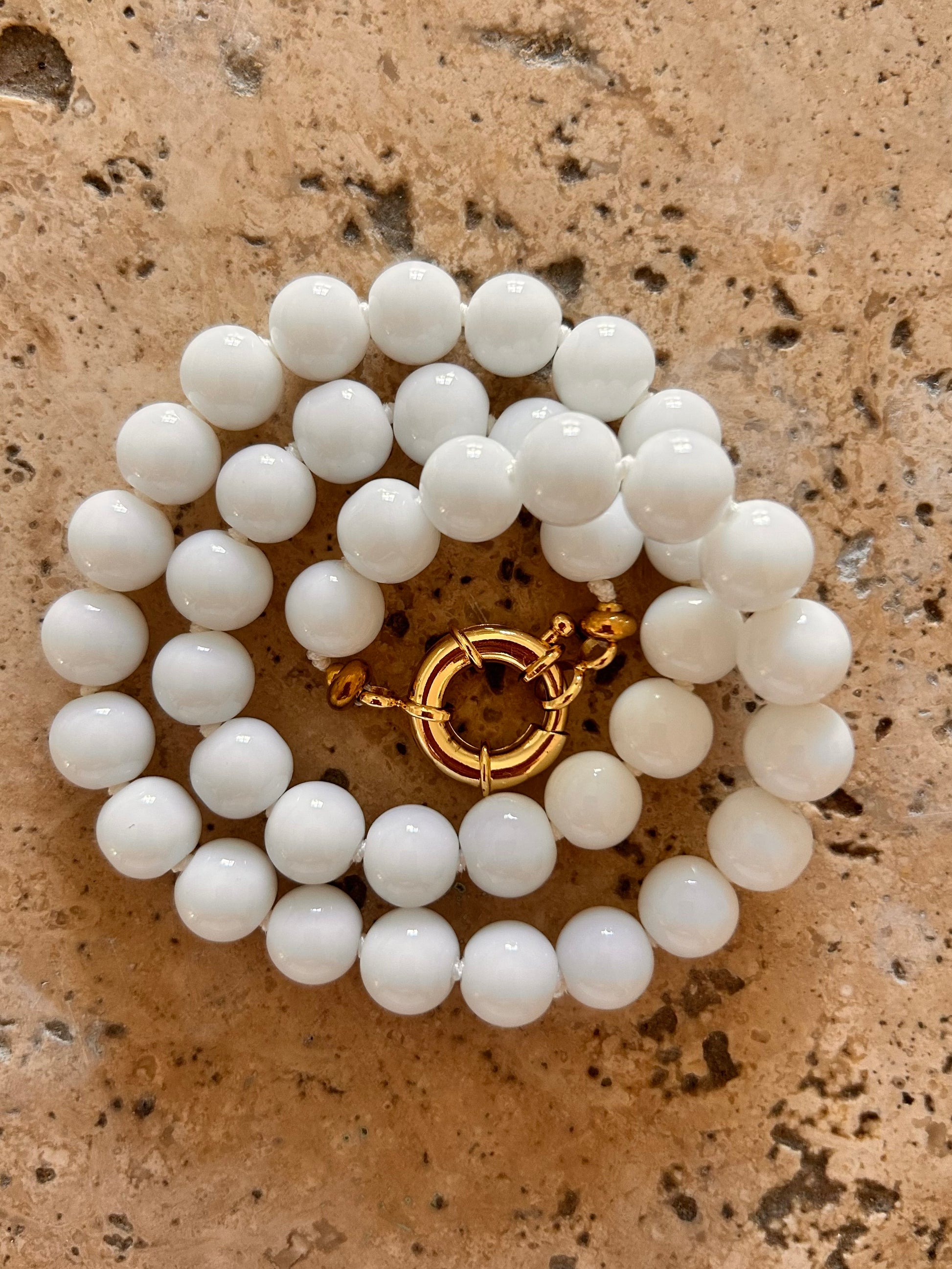Alba, c’est la promesse d’un style lumineux, doux et assumé. Avec ses perles d’agate blanche nouées une à une sur fil blanc, ce collier joue la carte de l’élégance minérale. Une pièce forte dans sa simplicité, à porter au naturel ou en contraste avec des tenues plus affirmées.