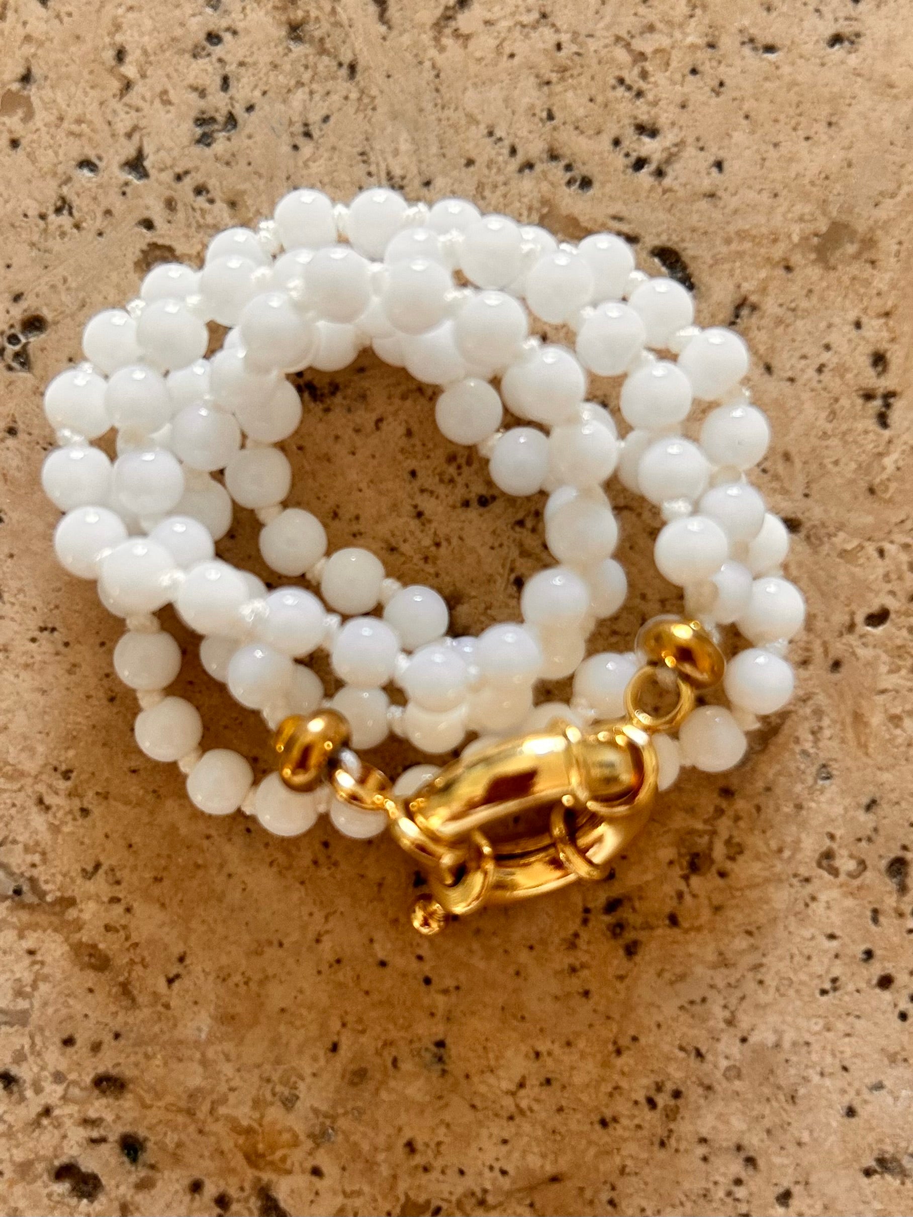 Alba, c’est la promesse d’un style lumineux, doux et assumé. Avec ses perles d’agate blanche nouées une à une sur fil blanc, ce collier joue la carte de l’élégance minérale. Une pièce forte dans sa simplicité, à porter au naturel ou en contraste avec des tenues plus affirmées.