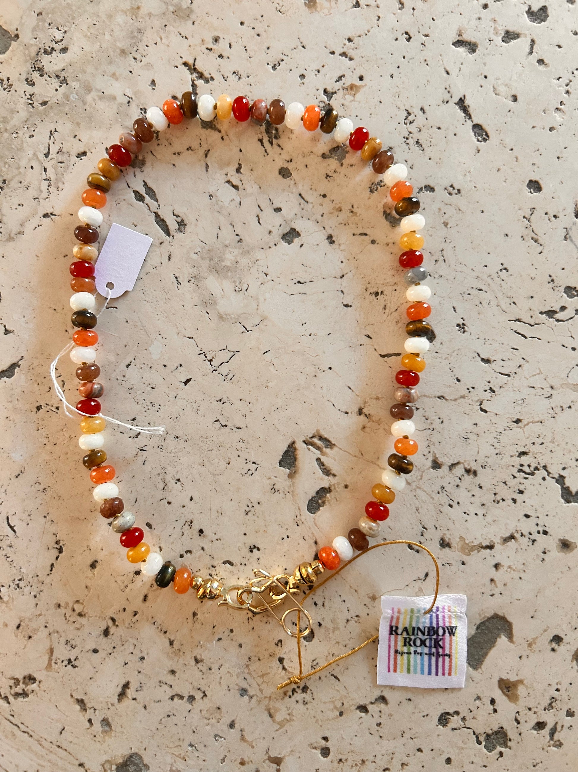 • Perles en pierres naturelles multicolores (rouges, orangés, bruns, blancs, ocres)