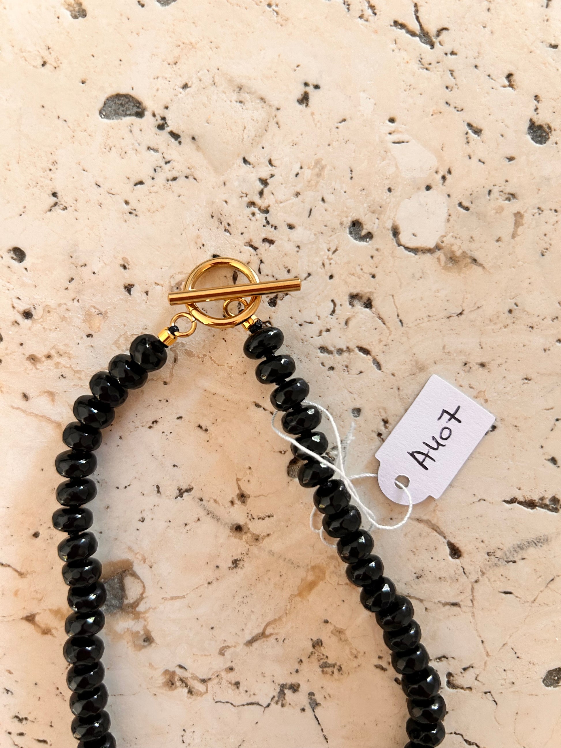 • Chocker en agate noire facettée (perles naturelles polies et facettées)